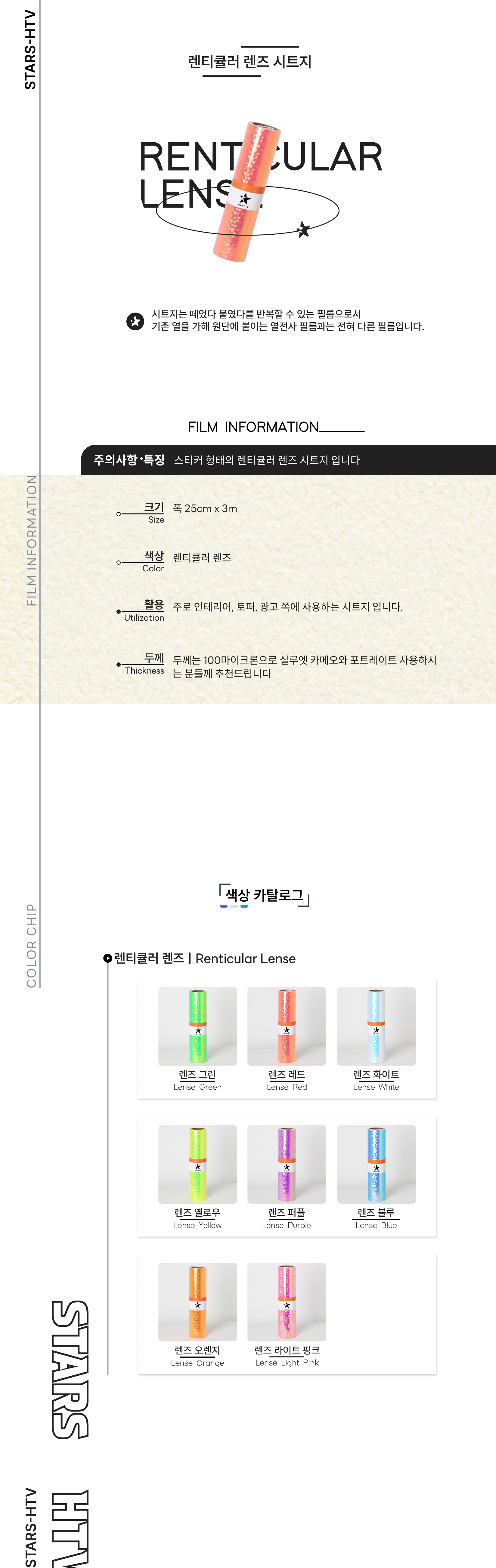 소포장 [렌티큘러 렌즈 컬러 시트지] 25cm x 3m