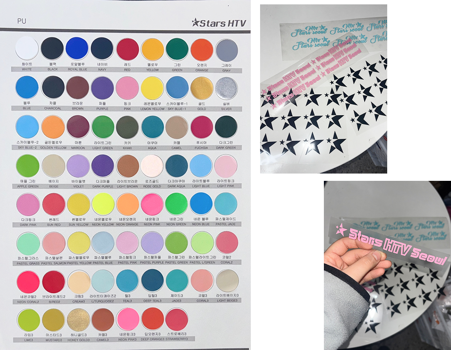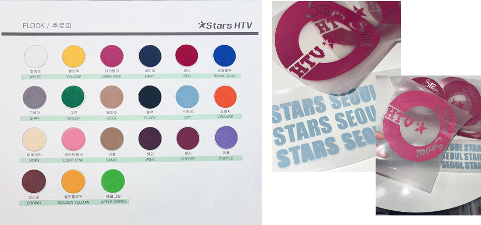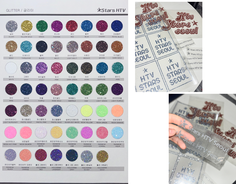 표면에 반짝이는 글리터 입자를 고정시킨 열전사 필름으로,