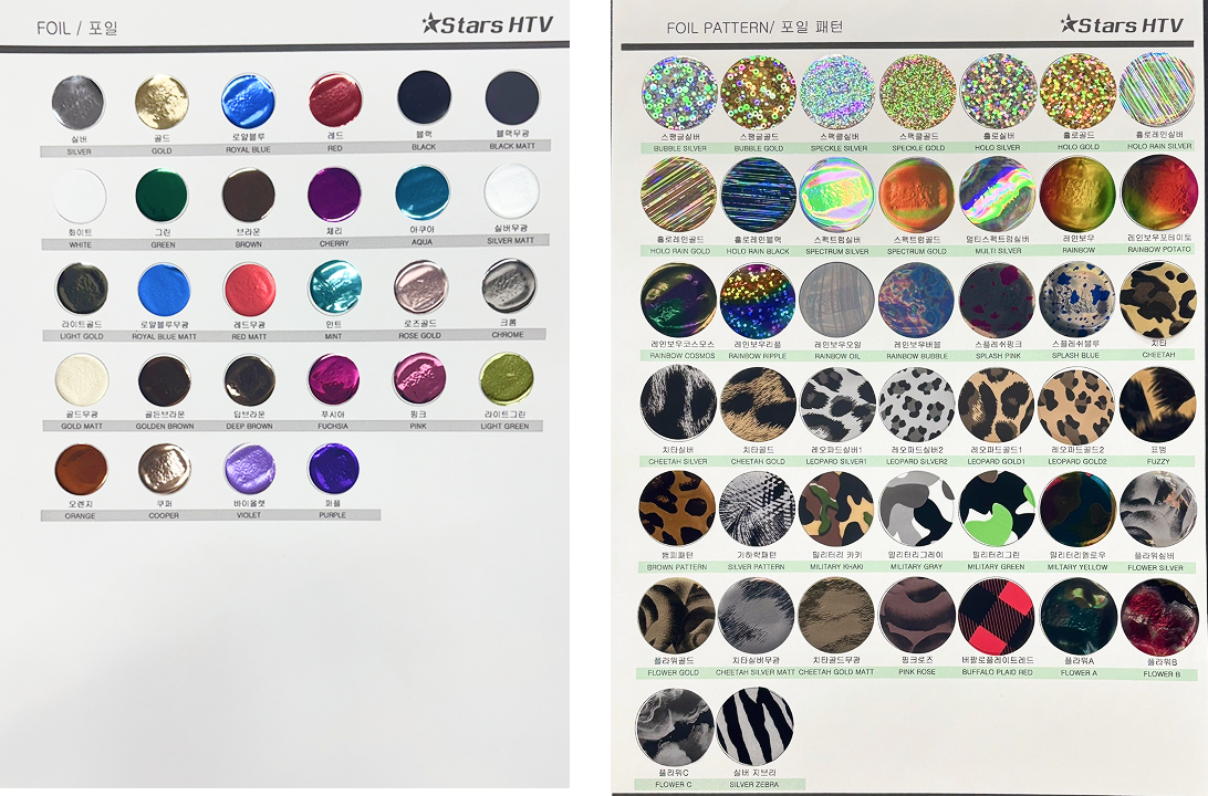 금속 느낌을 내는 메탈릭(금박·은박) 효과의 열전사 필름입니다.