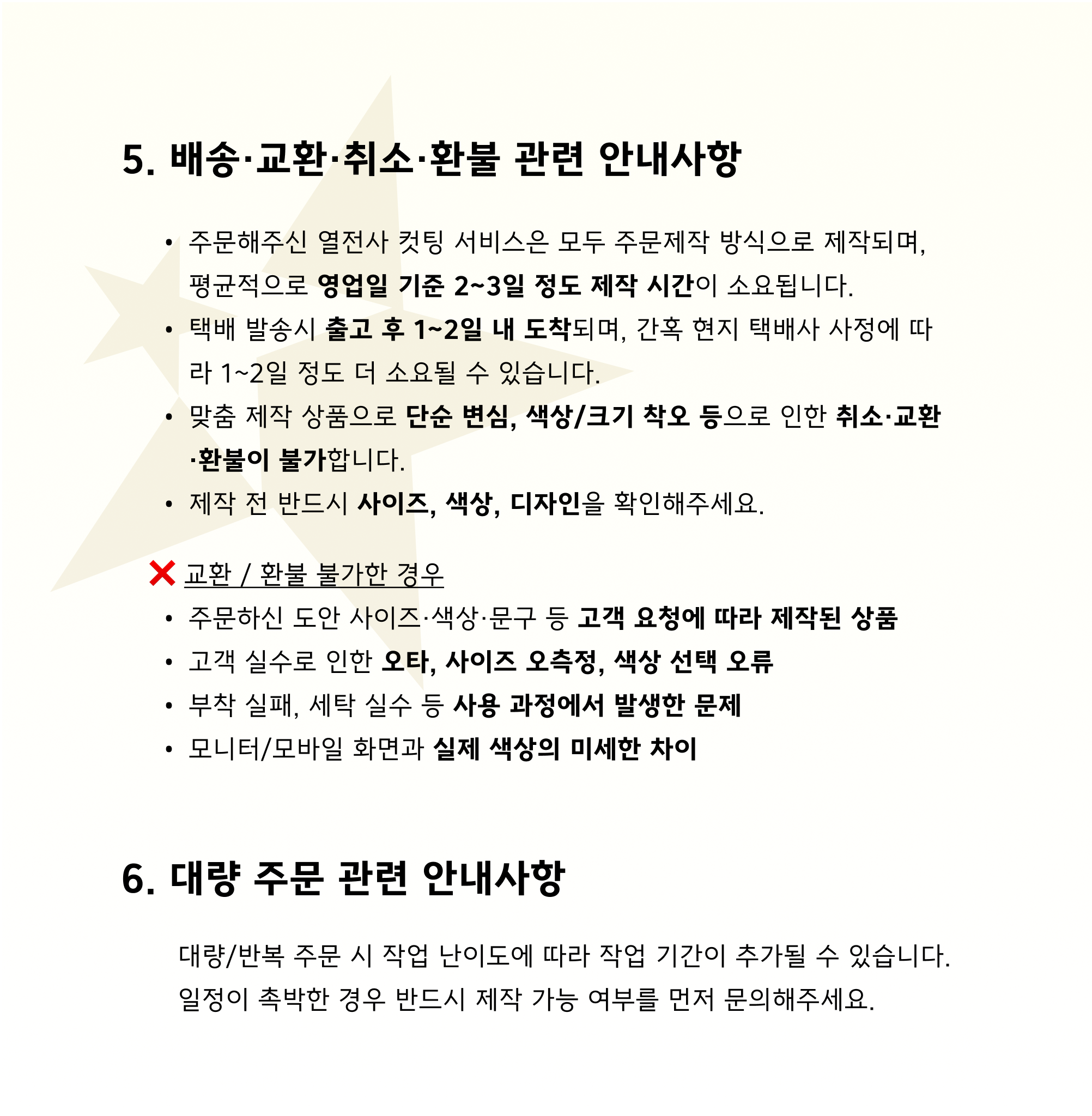 스타스 열전사필름 반품/교환 안내